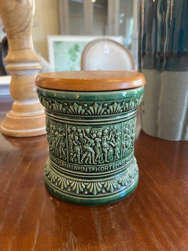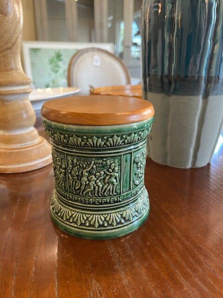 German Pipe Tobacco Canister With Wood Lid 5" T
