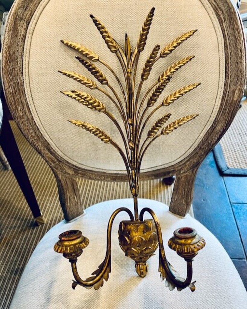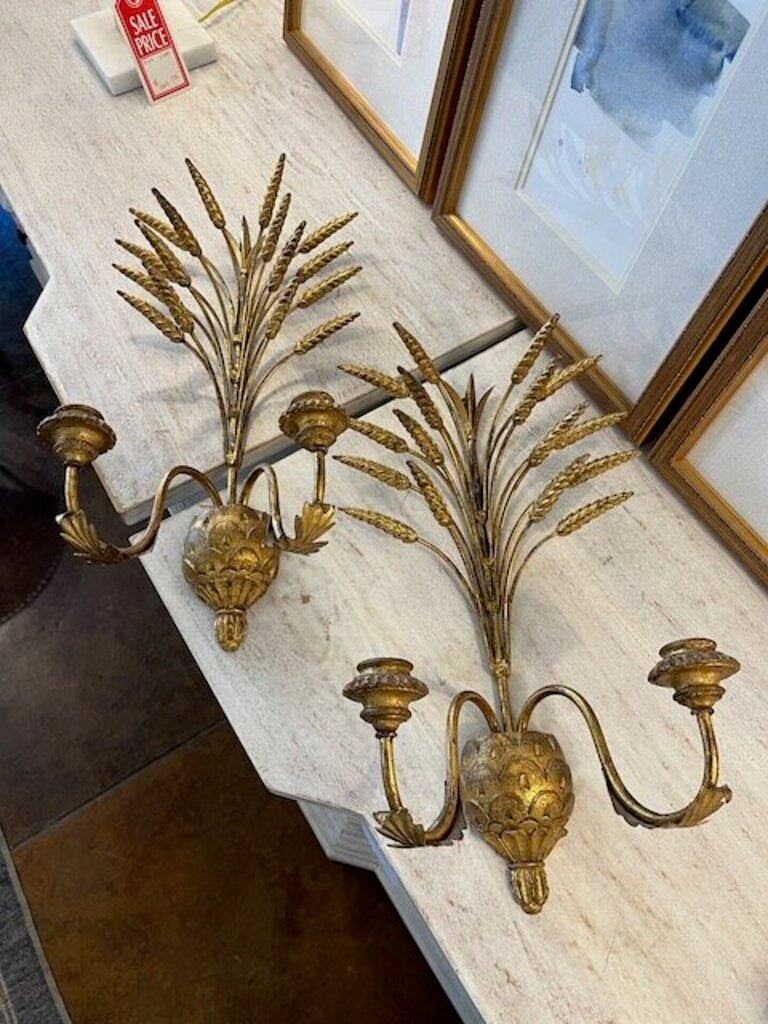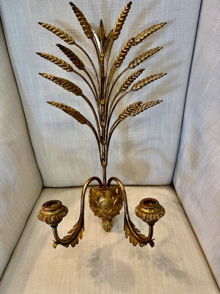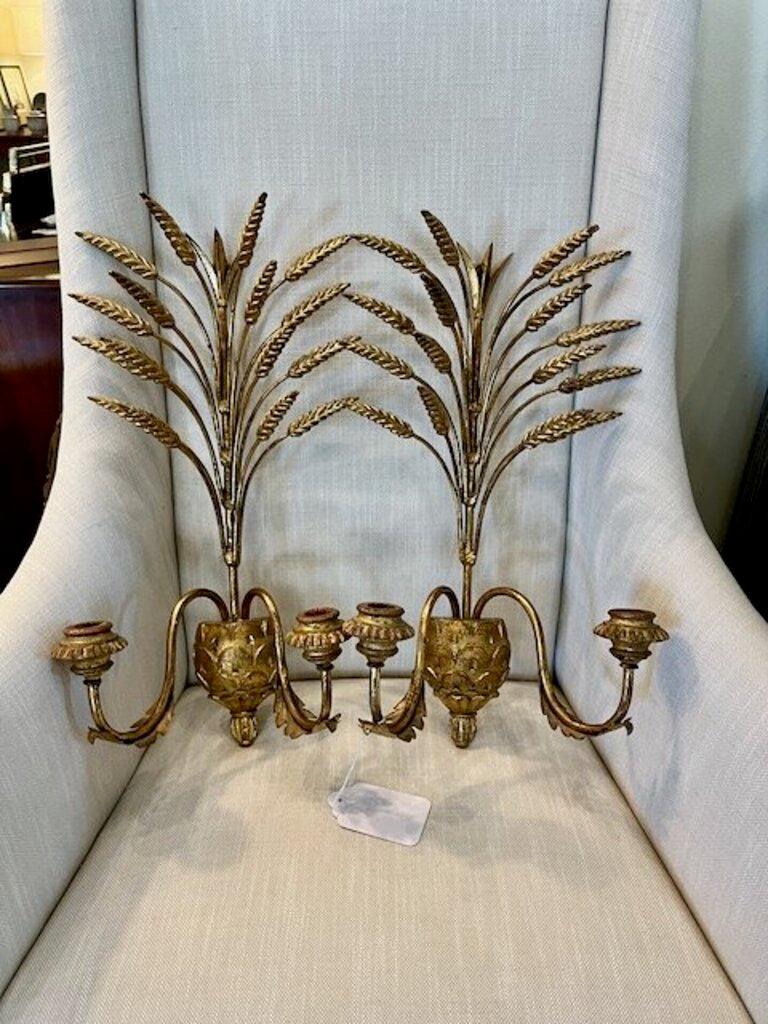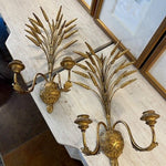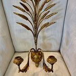 Gold Gilded Wheat Tole Sconces made in Italy circa 1920 9.6" W x 6.5"Dx 18"L