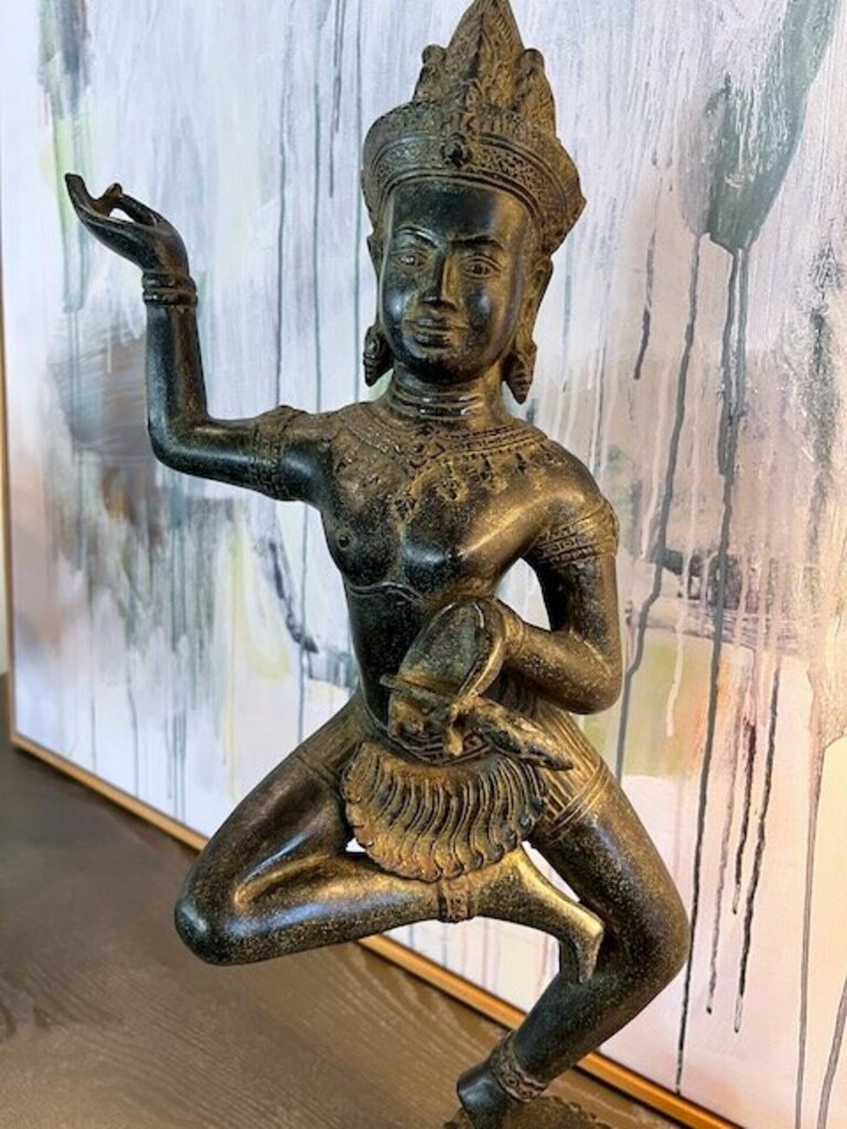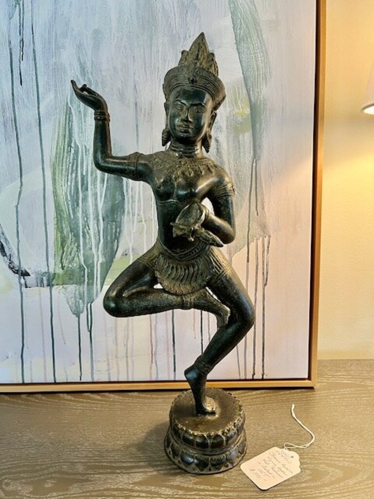 Large Bronze Apsara Figure Angkor Wat Purchased in Cambodia 22"T