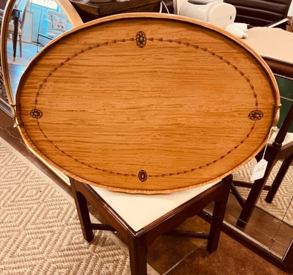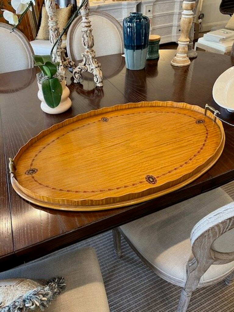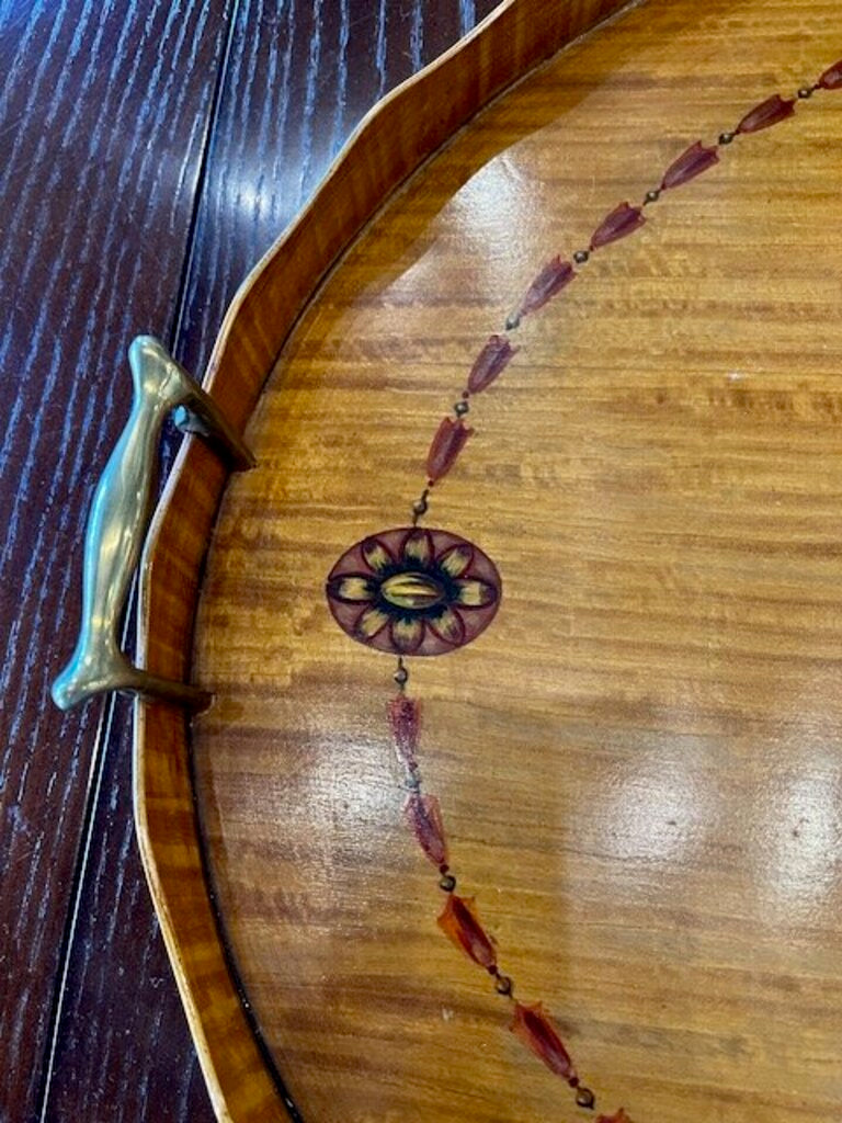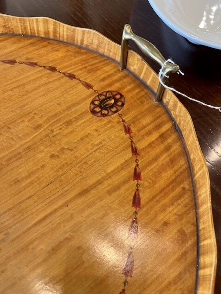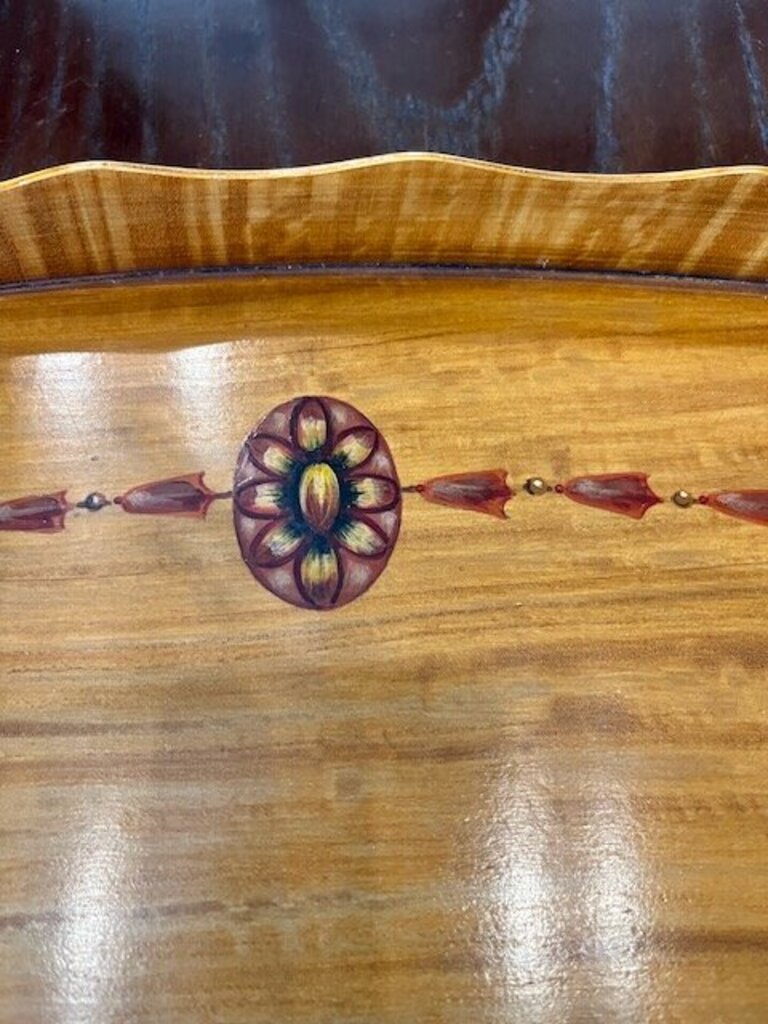 Large Oval Satin Wood Trey handpainted design 1919 - 1920's 1.5 " D x 20.75 " W x 31.5' L