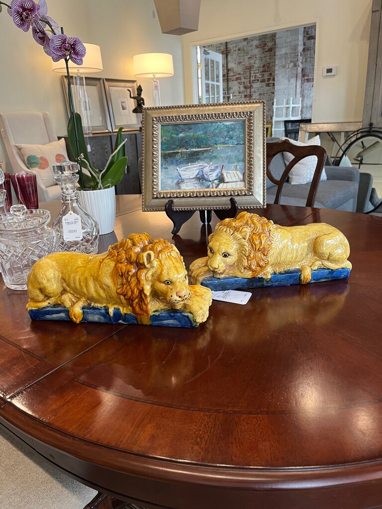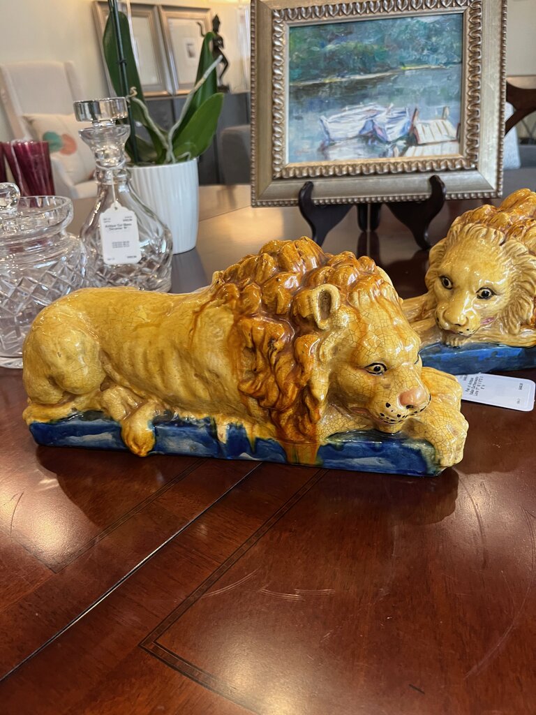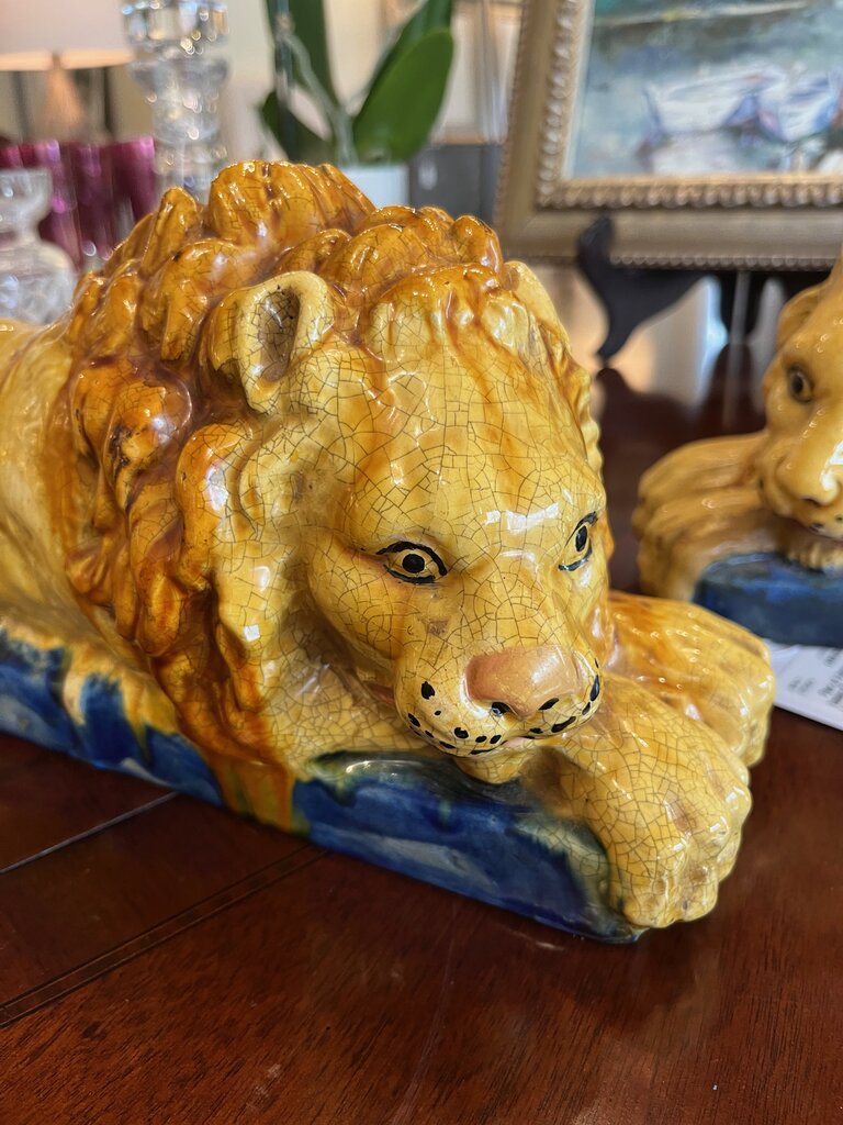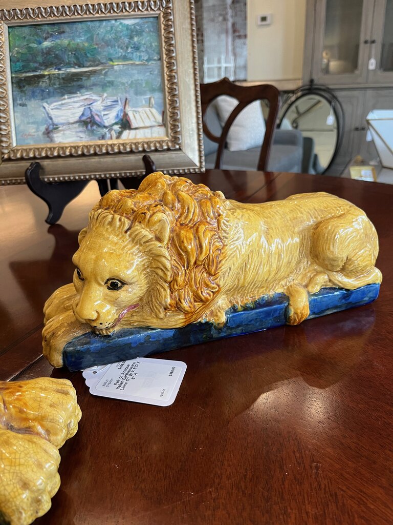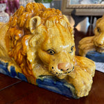 Pair of Antique Italian Earthenware Lions 17" W X 5"D X 6" H