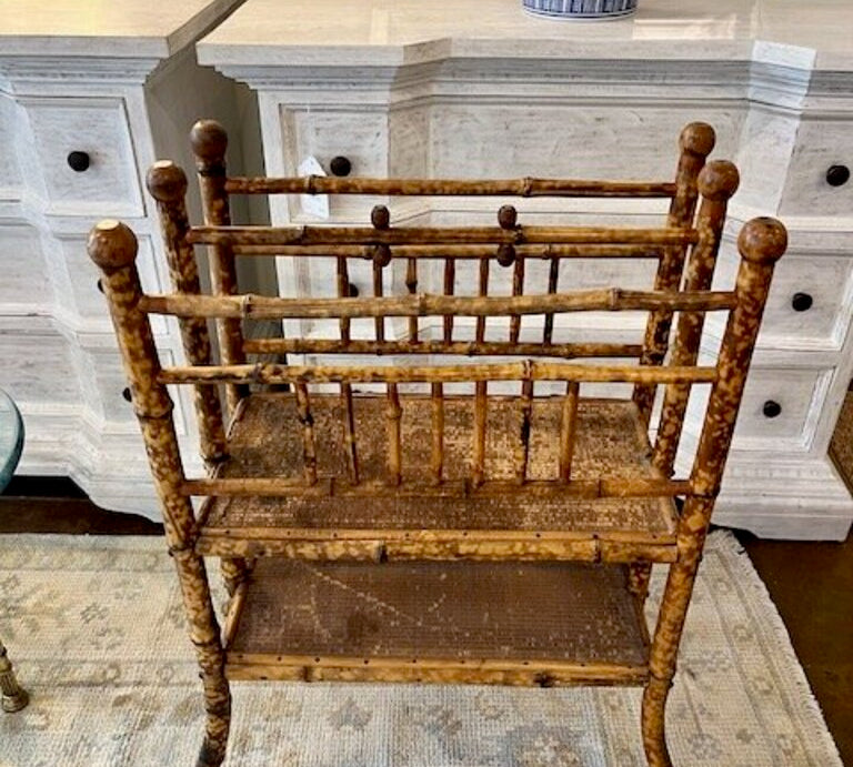 Antique English Bamboo Newspaper Rack 20"W x 11"D x 30"T