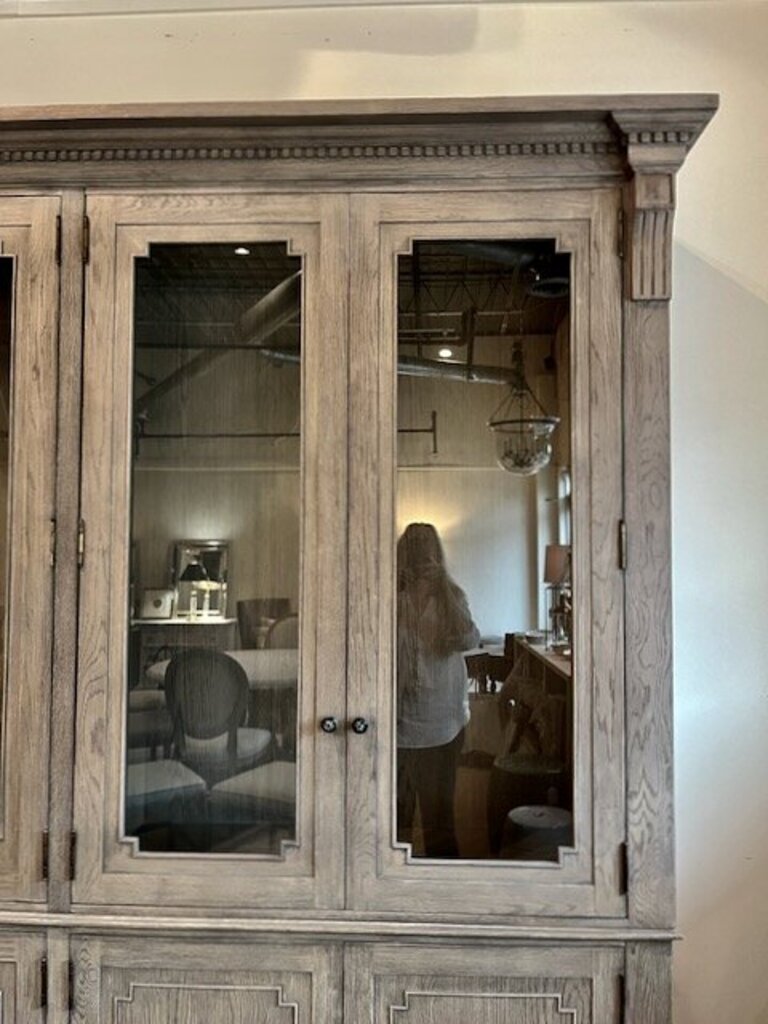 Restoration Hardware St. James Display/China Cabinet 91"T x 88"L x 16"D with crown 19"D