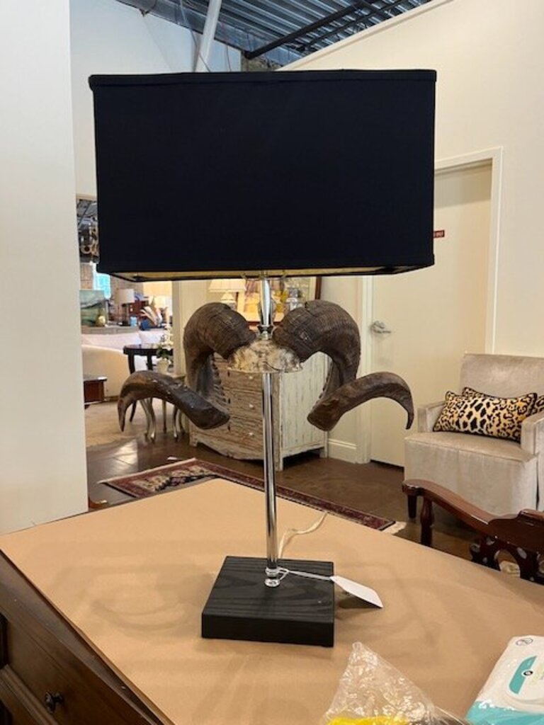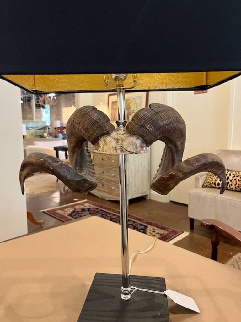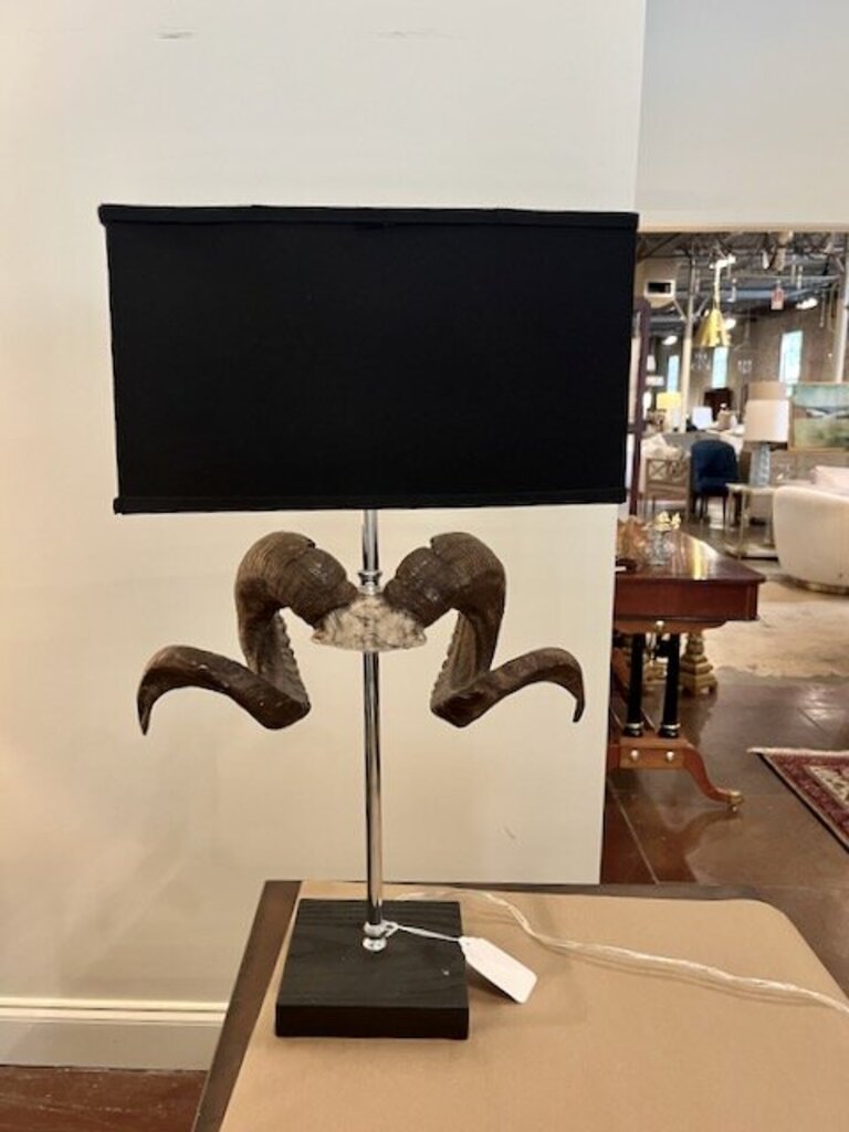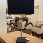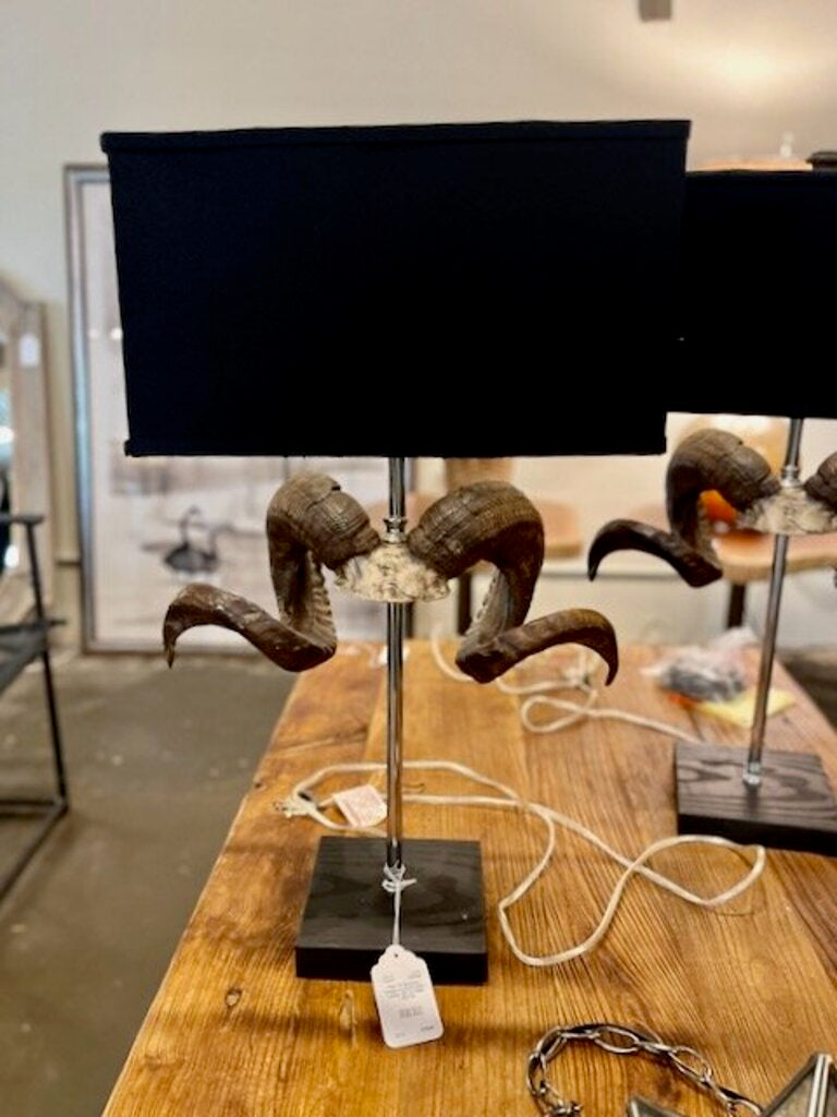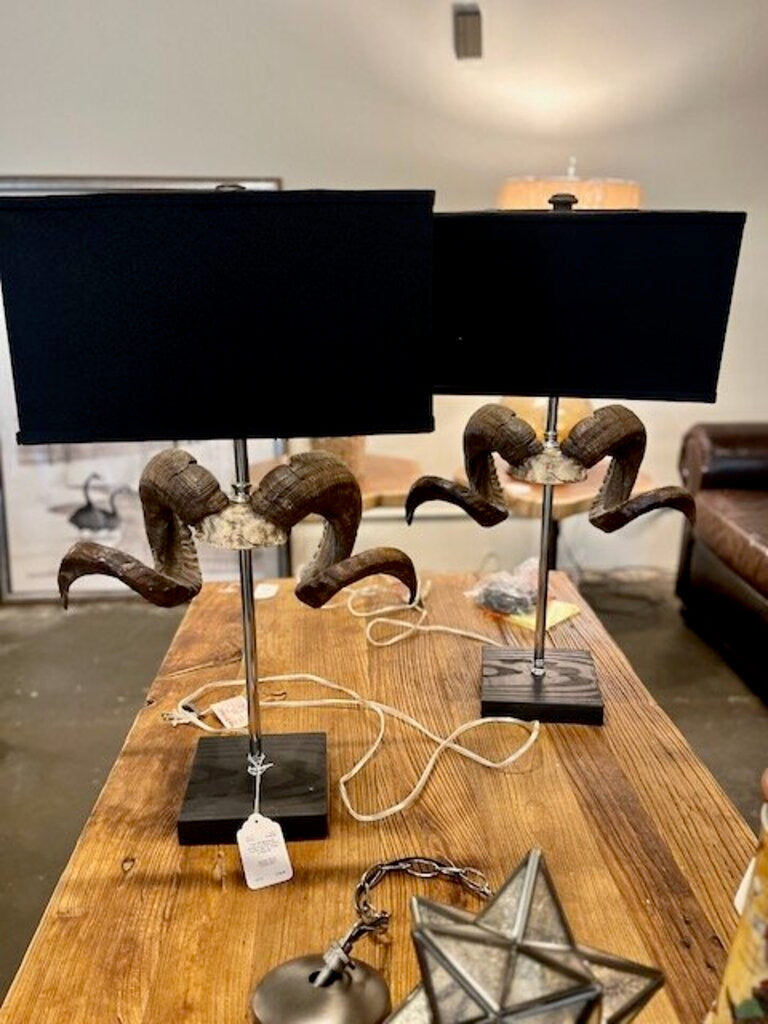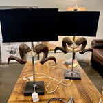 PAIR Of Barbara Cosgrove Ram Horn Lamps 29" to Finial x 16.5"W
