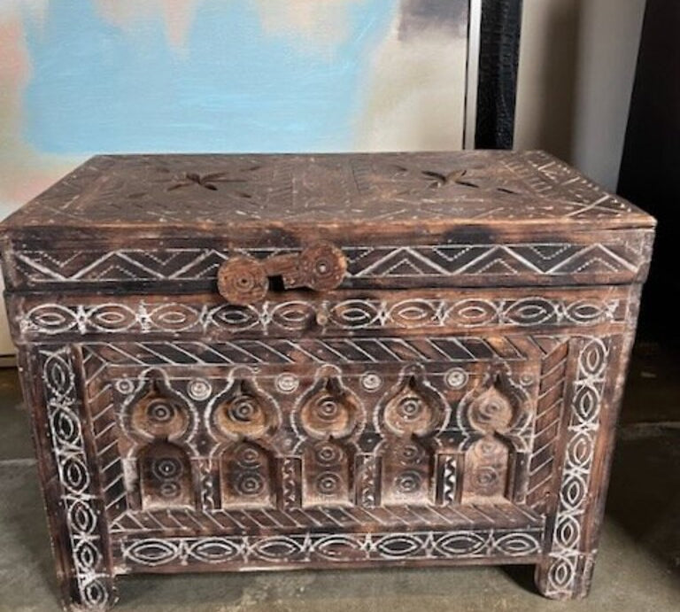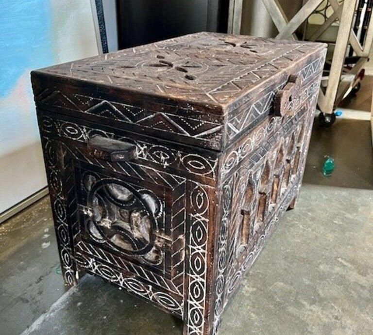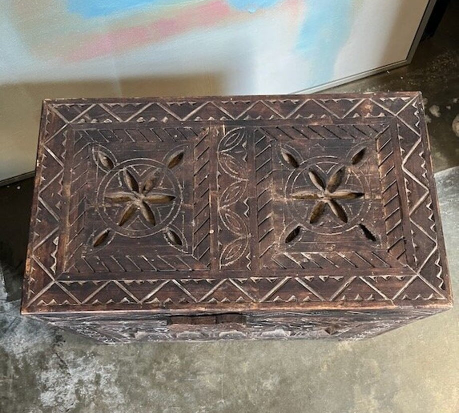 Vintage Carved Teakwood Trunk From India 24"W x 14"D x 18"T