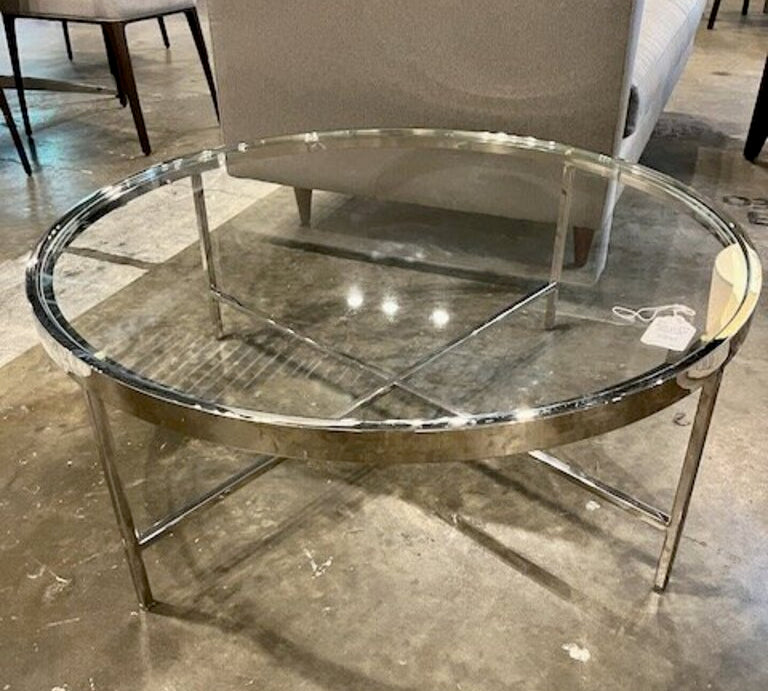 Mitchell Gold Round Chrome And Glass Cocktail Table 38"Diam x 15"T