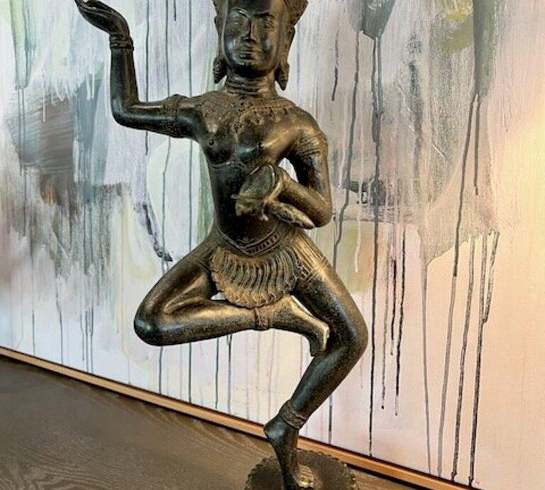 Large Bronze Apsara Figure Angkor Wat Purchased in Cambodia 22"T