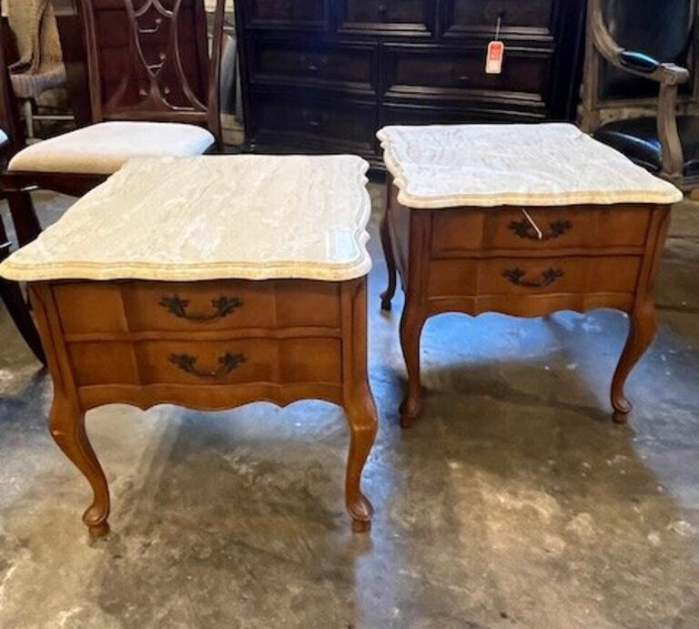 Pair of Vintage Prince Howard Marble Top Nightstands / End Tables 22"W x 26"D x 21.5"T