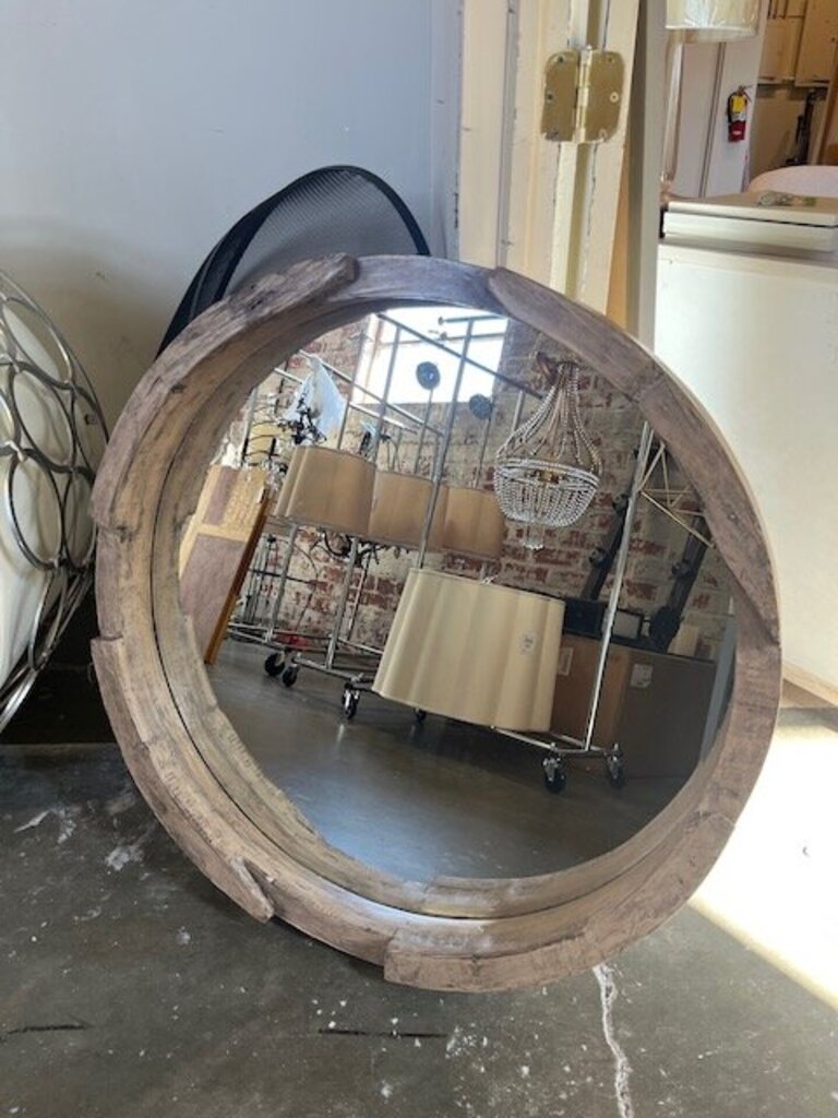 Distressed Wood Style Frame Mirror 36.5" Diam x 4"D