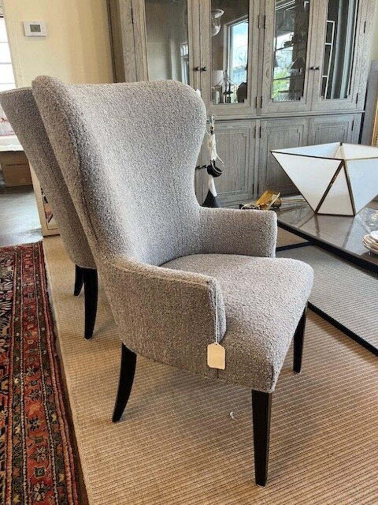 Jessica Charles Wingback Chair In Grey Boucle Fabric 28.5"W x 20"D x 42"T