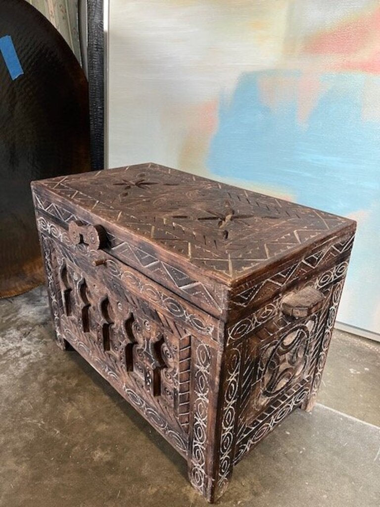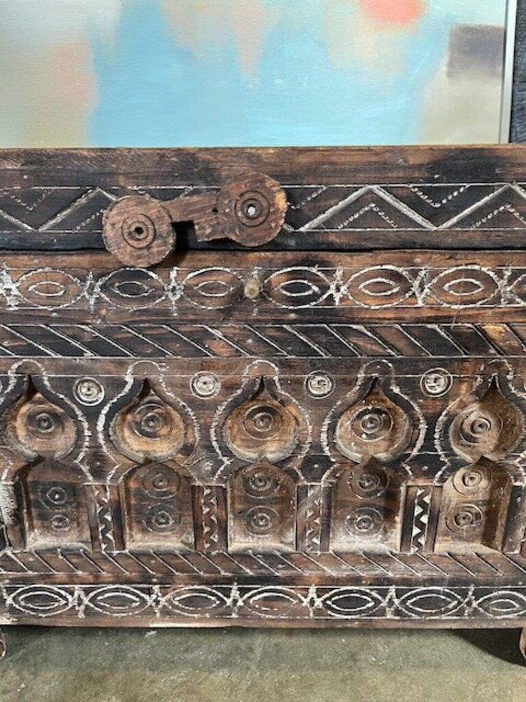 Vintage Carved Teakwood Trunk From India 24"W x 14"D x 18"T