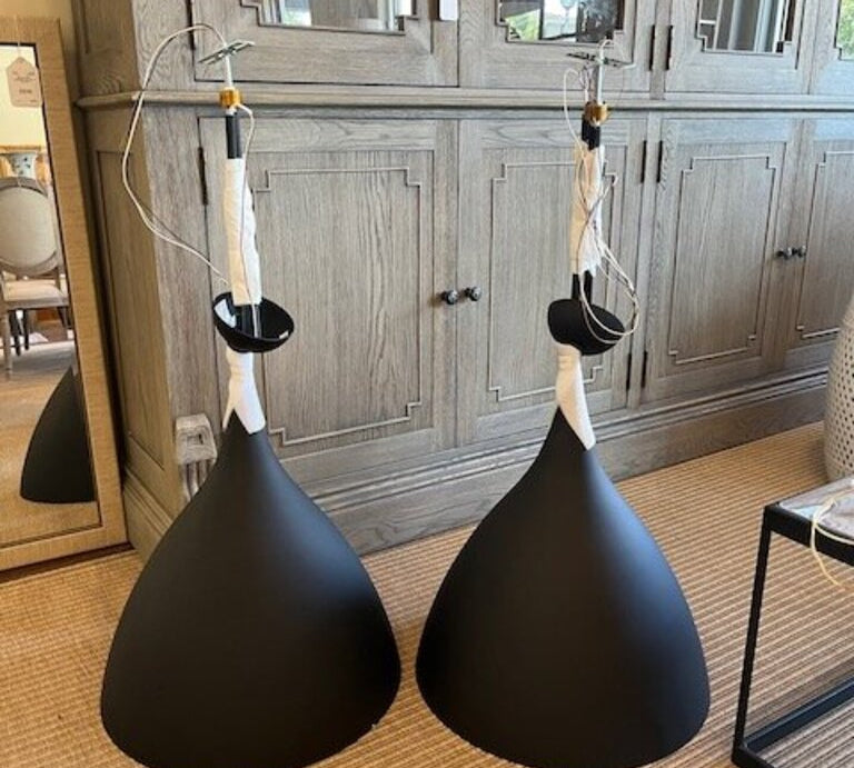NEW Custom Visual Comfort Agnes Pendant In Black With Gold Interior 18"Diam x 48"T or 22.75" T