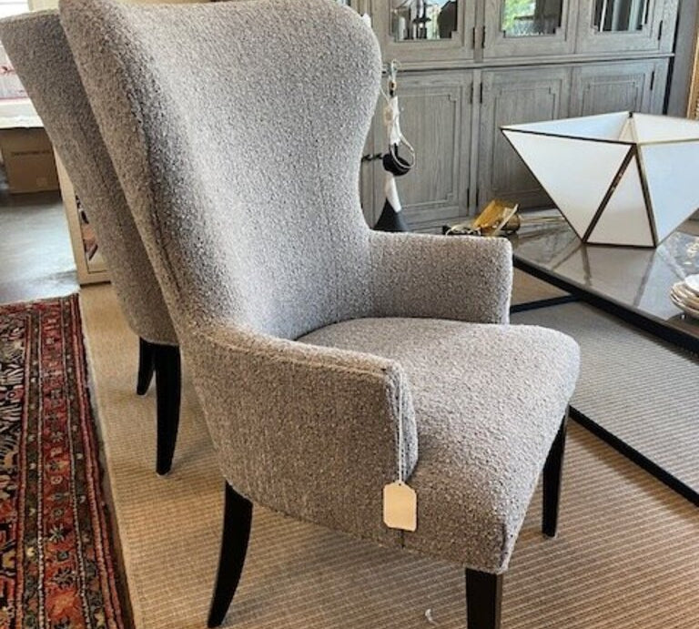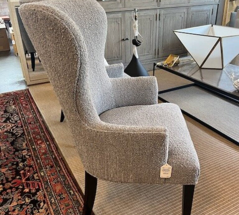 Jessica Charles Wingback Chair In Grey Boucle Fabric 28.5"W x 20"D x 42"T