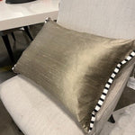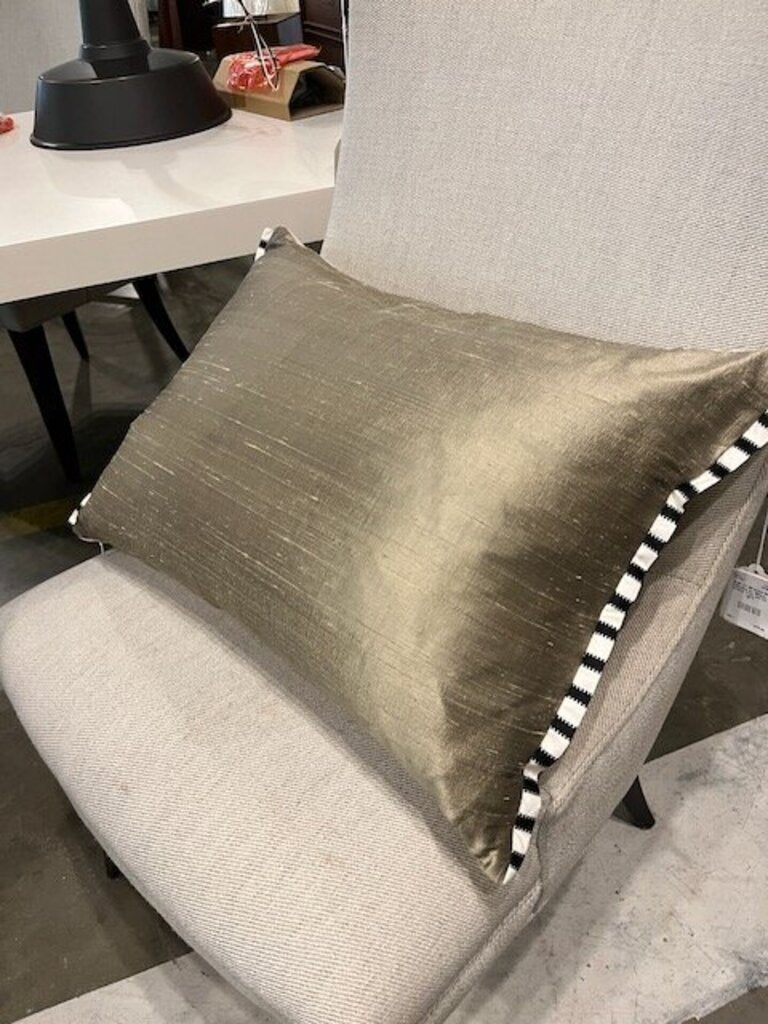 Pair of Bronze Silk Pillows w/ Black & White Trim 24"W x 16"T