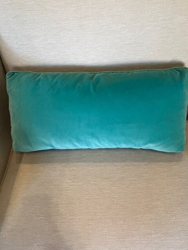 Pair Of Teal Velvet Lumbar Pillows 23" x 11"