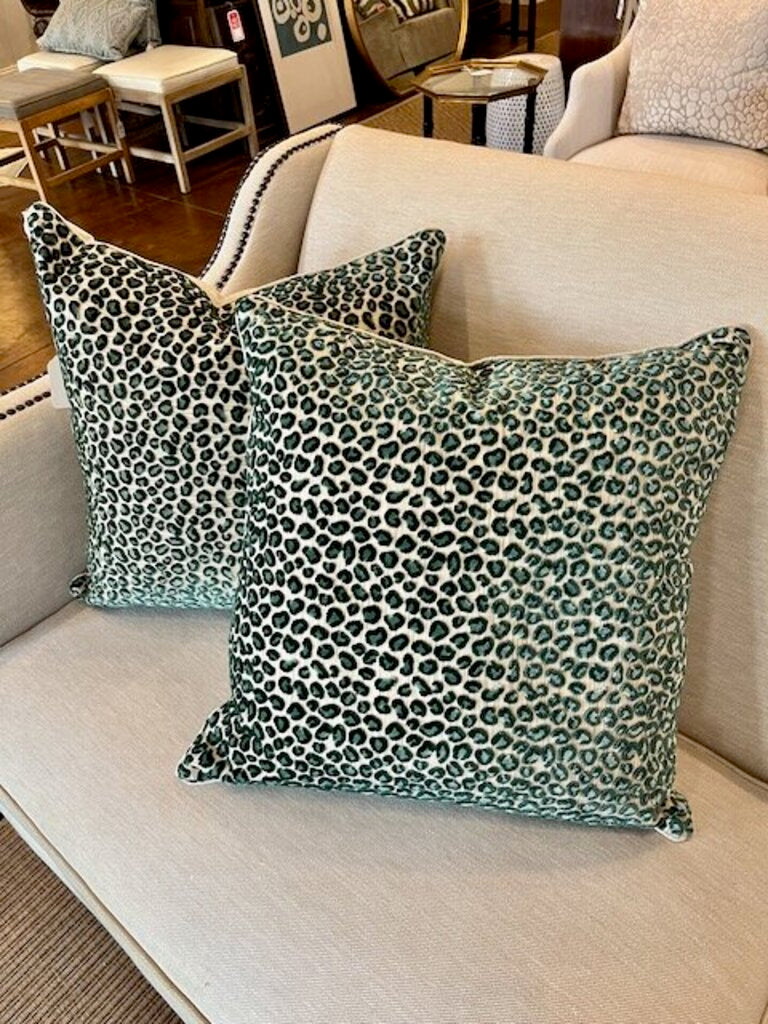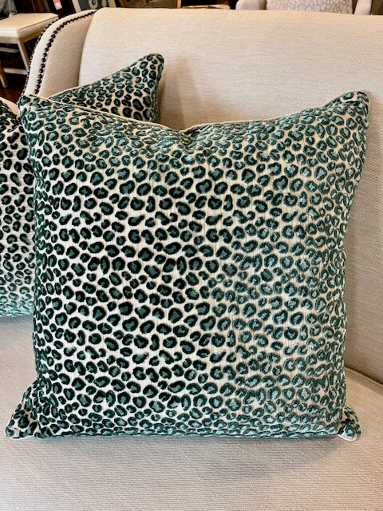 Pair of Velvet Teal Leopard Print Pillows 21"W X 21"W