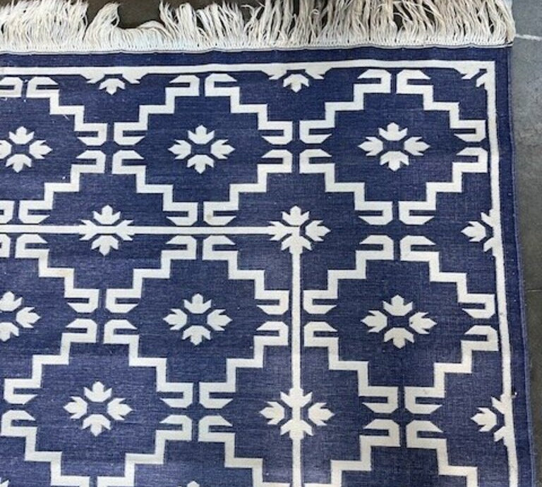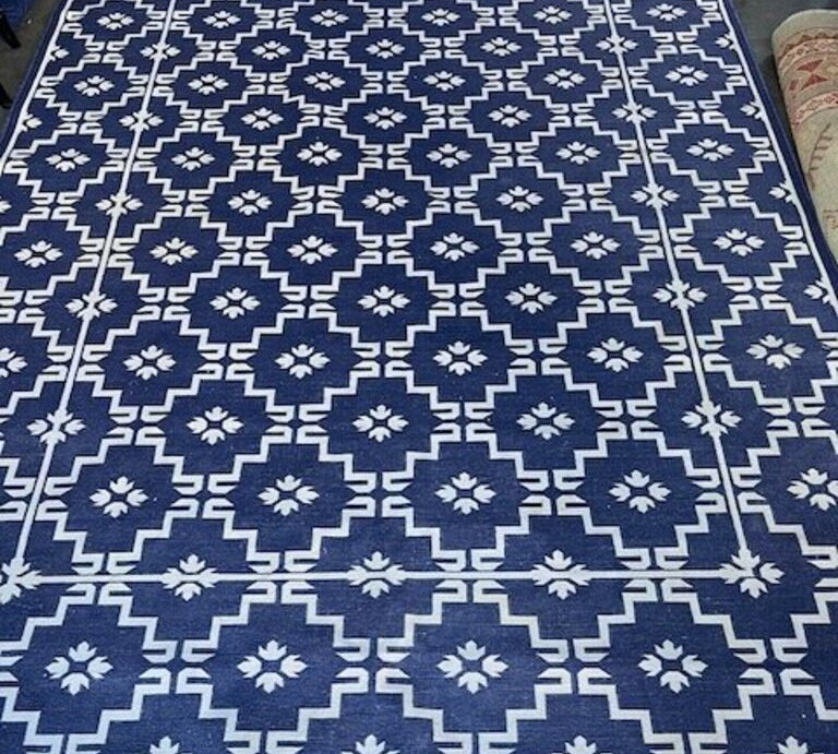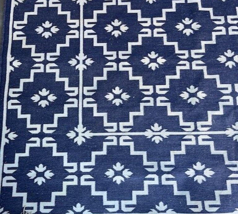 9'7" x 6' 4" Blue And White Flatweave Rug Some Discoloration
