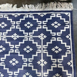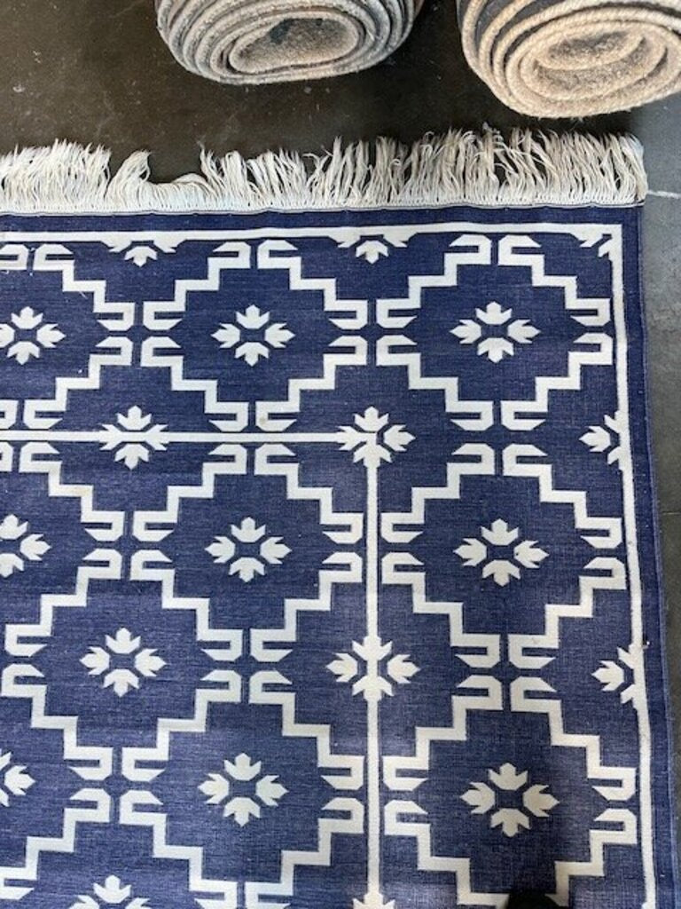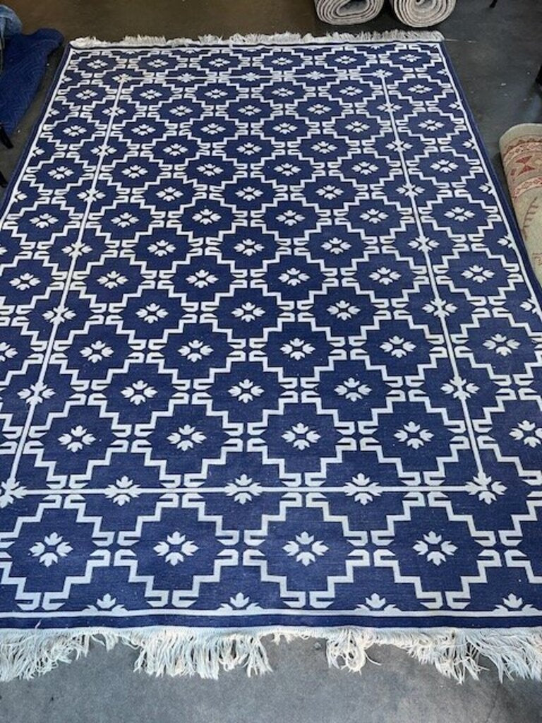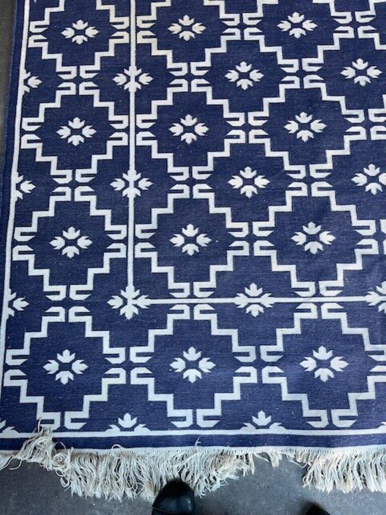 9'7" x 6' 4" Blue And White Flatweave Rug Some Discoloration