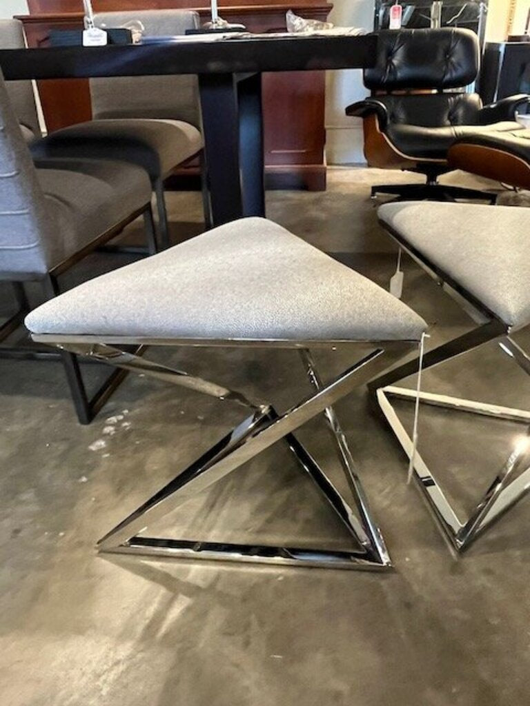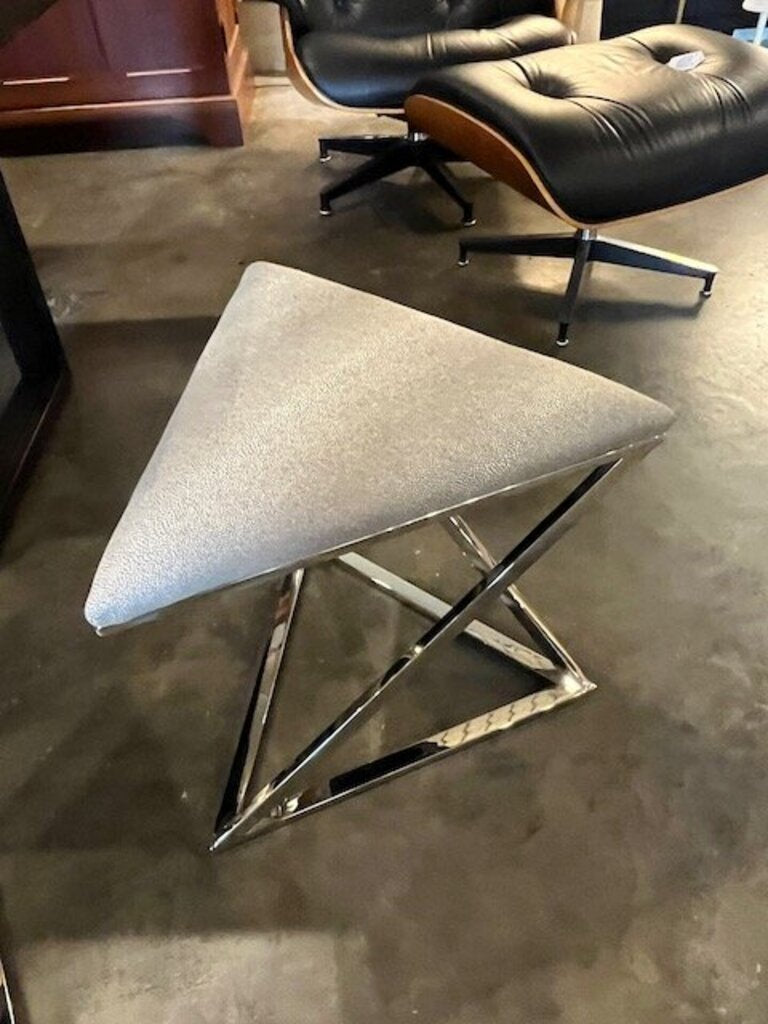 Contemporary Triangle Ottoman With Chrome 20" x 20" x 19"T