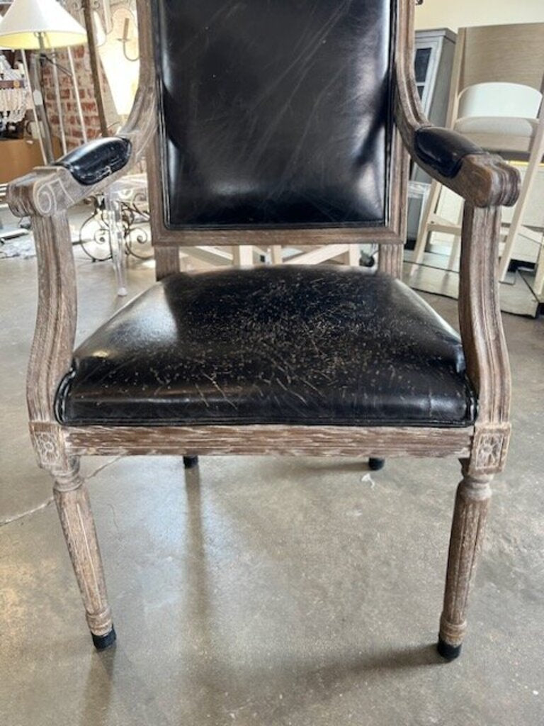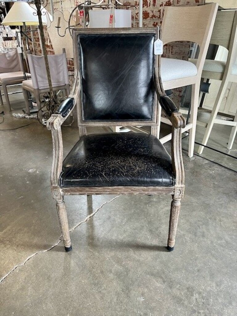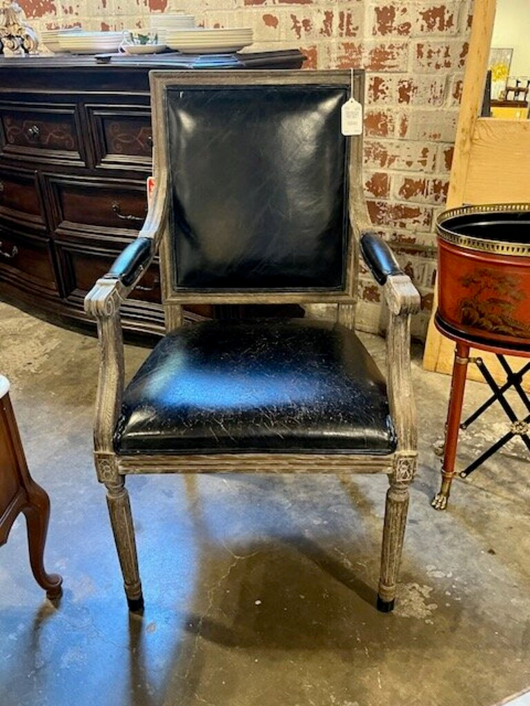 French Style Arm Chair With Black Leather 23"W x 19"D x 39.5"T