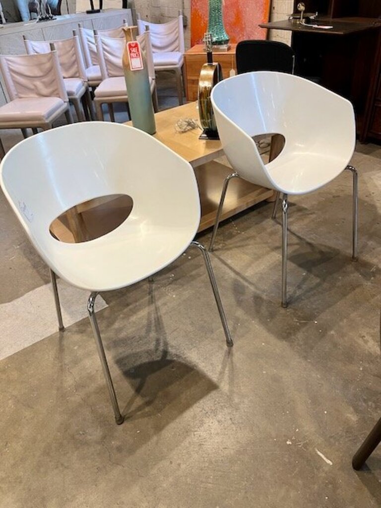 Pair Sintesi White Orbit Chairs Made in Italy 30"H X 21"