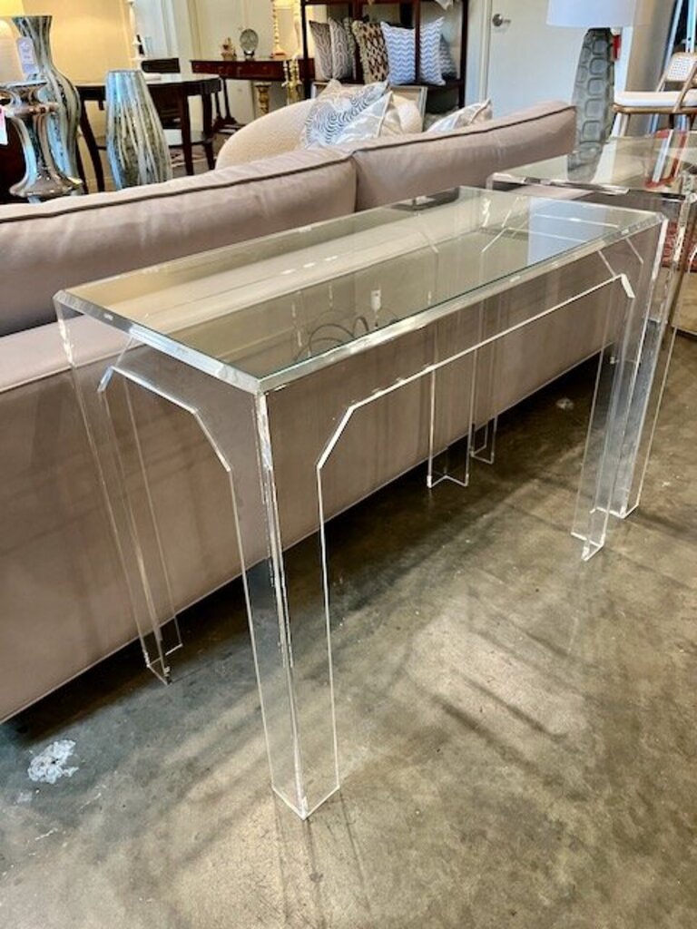 Lucite And Glass Top Console Table 36"W x 18"D x 29.5"T