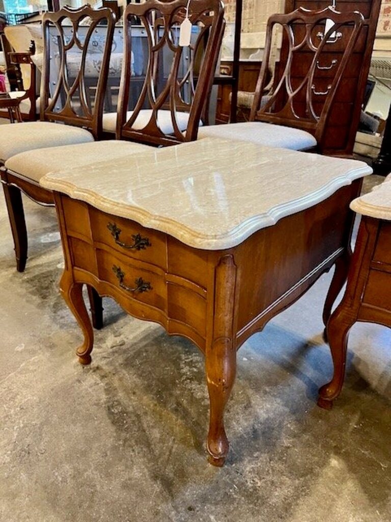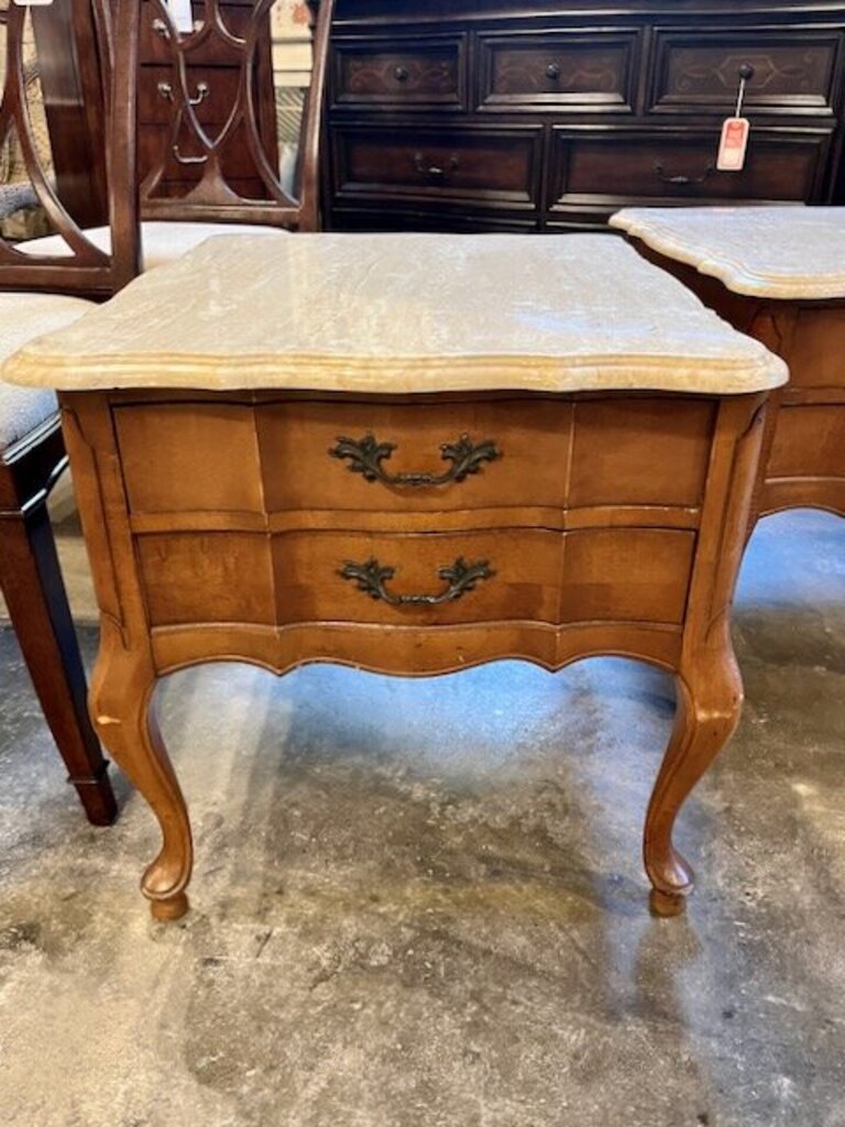 Pair of Vintage Prince Howard Marble Top Nightstands / End Tables 22"W x 26"D x 21.5"T