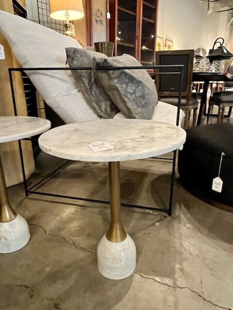 Round Marble And Gold Accent Table 18"Diam x 22"T