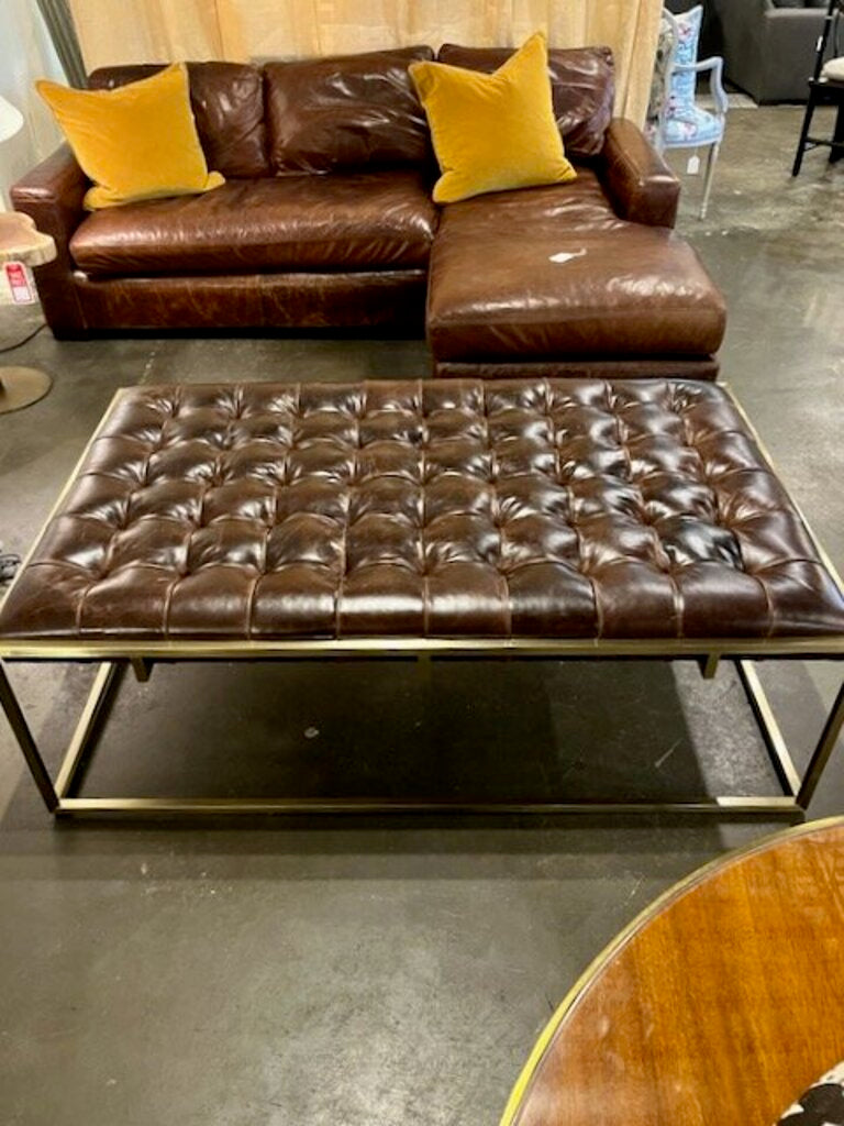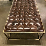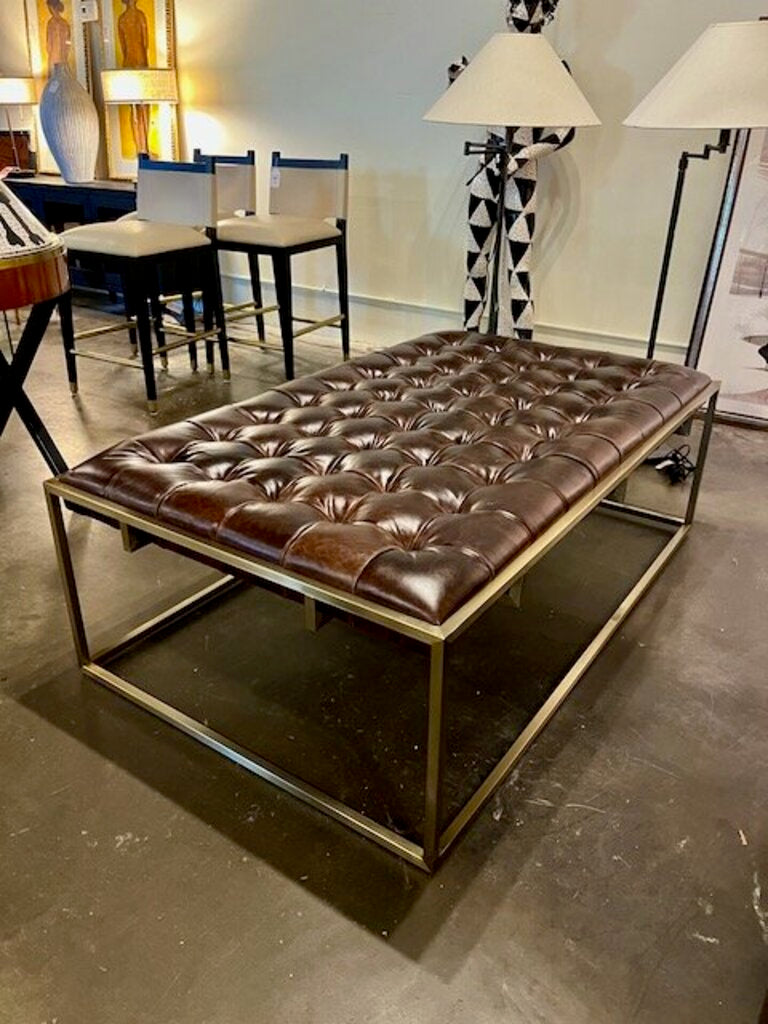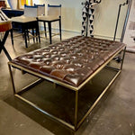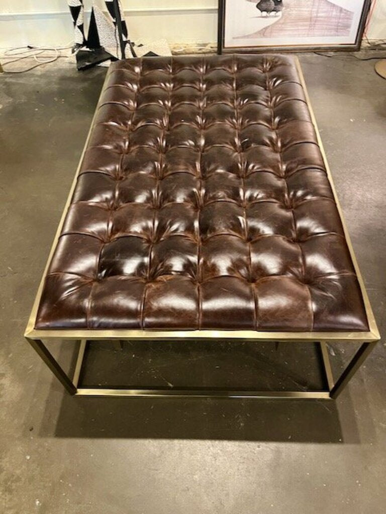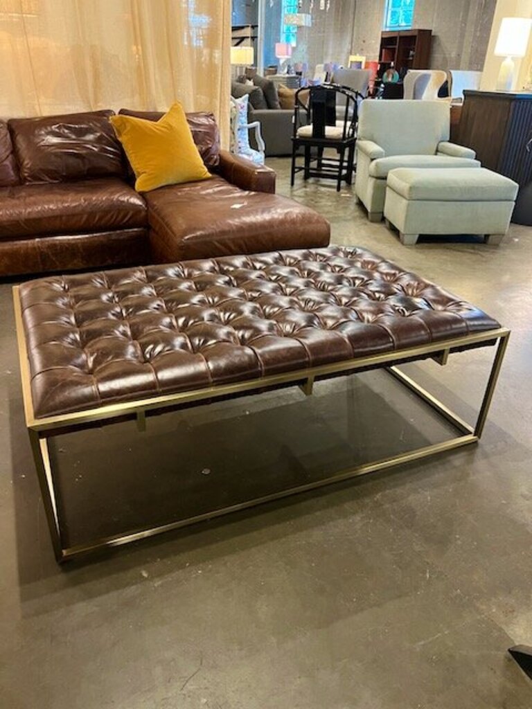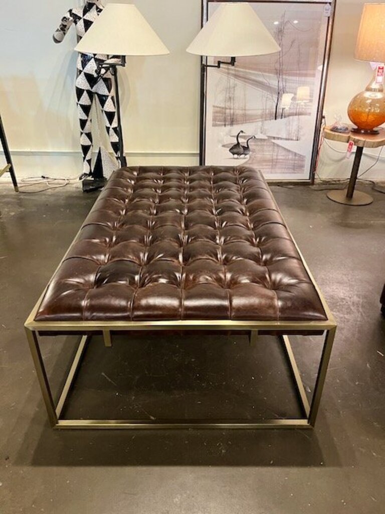 Universal Tufted Leather And Brass Bass Ottoman/Coffee Table 50" Lx 32"D x